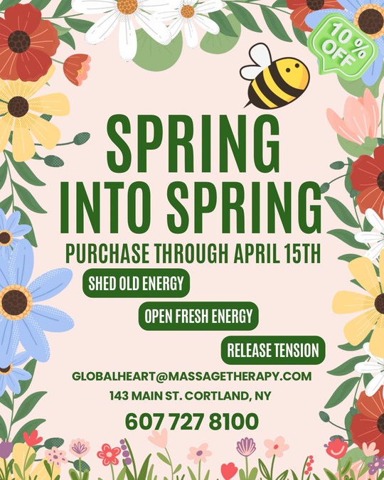 Please click the "Gift Certificates Purchase Now" button at the top of any page to be taken straight to gift certificates. These have a variety of options and can be e-mailed or printed. Once on the gift certificate page, you may buy any massage service or tab to the right at the top to pick a dollar amount. If you need to meet in person for a paper copy or would like to pay by phone call or text 607 727 8100 and we will be happy to schedule a time to meet with you or address your call.